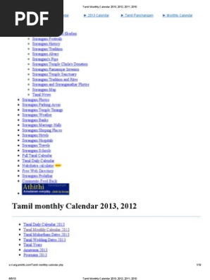 Tamil Monthly Calendar 2013 2012 2011 2010 Tamil Nadu Festival - Very easy to use and whatever needed in tamil is available, like daily, monthly, auspicious day, good time, raaghu, etc, etc.